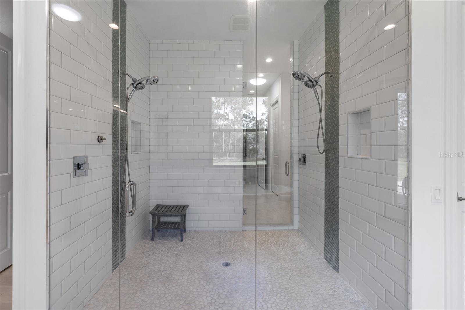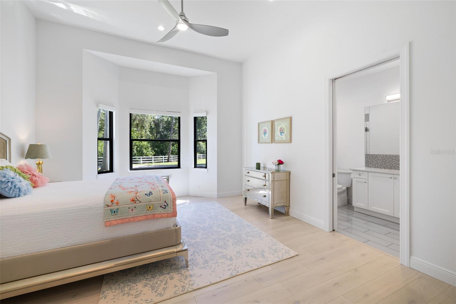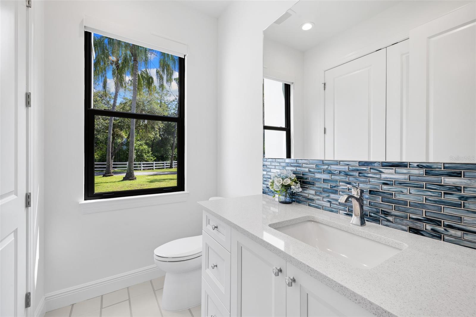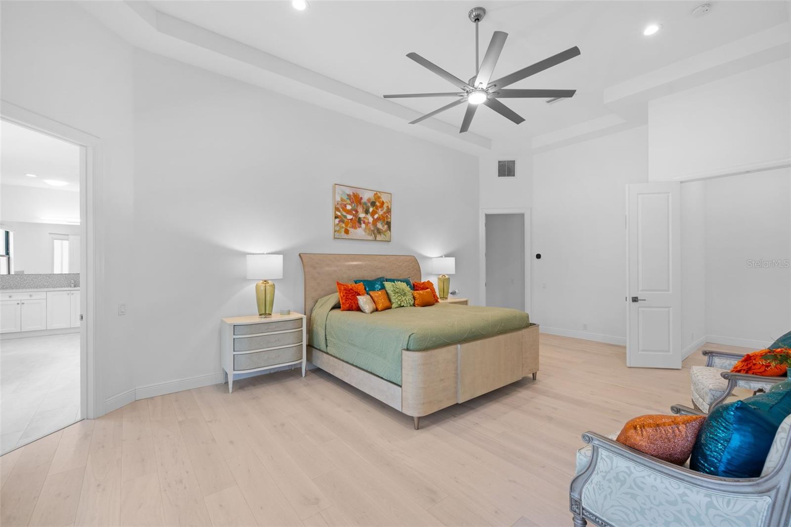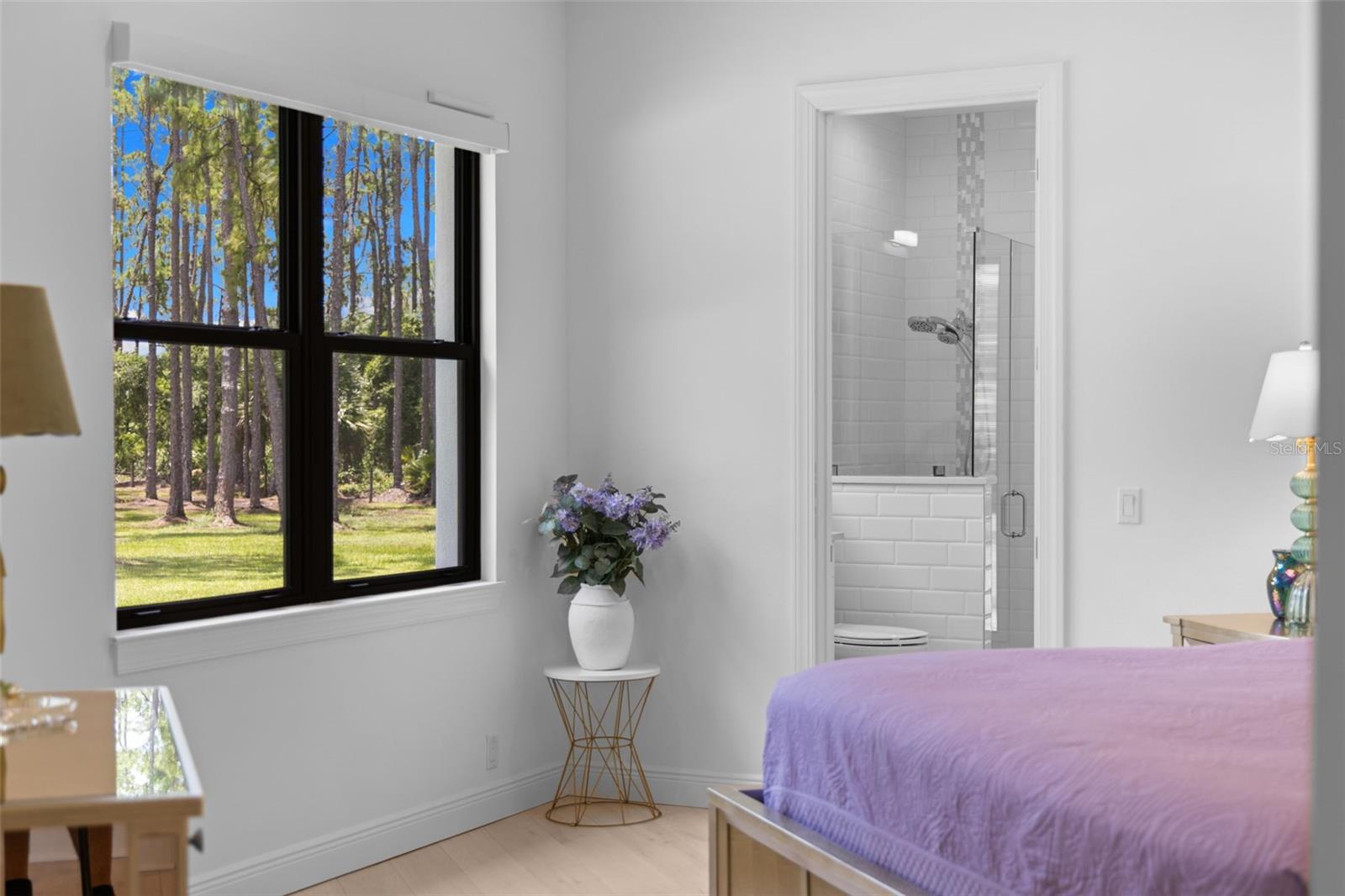 The primary residence offers four bedrooms, three of which are en-suite, with one thoughtfully repurposed as a private office or den, discreetly housing an approximately 9x7 integrated safe room. The primary suite is a private sanctuary, featuring dual spa-inspired his-and-her bathrooms adjoined by a walk-through shower, a sculptural soaking tub, and an impressive walk-in California Closet that you'll never want to leave. Within the primary wing, a sophisticated media room awaits, complete with a wet bar featuring a sink, dishwasher, and mini fridge, making it the perfect space for entertaining or a quiet retreat.