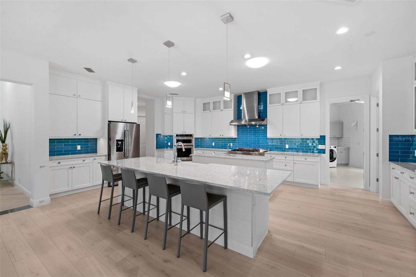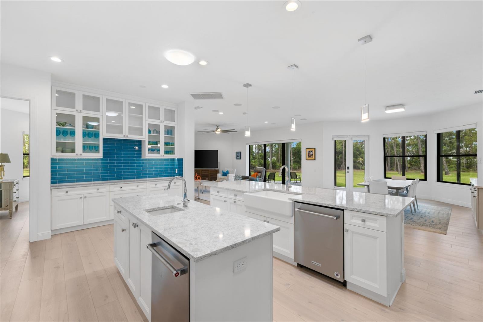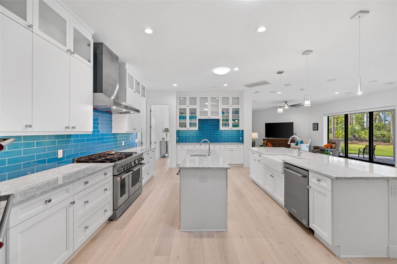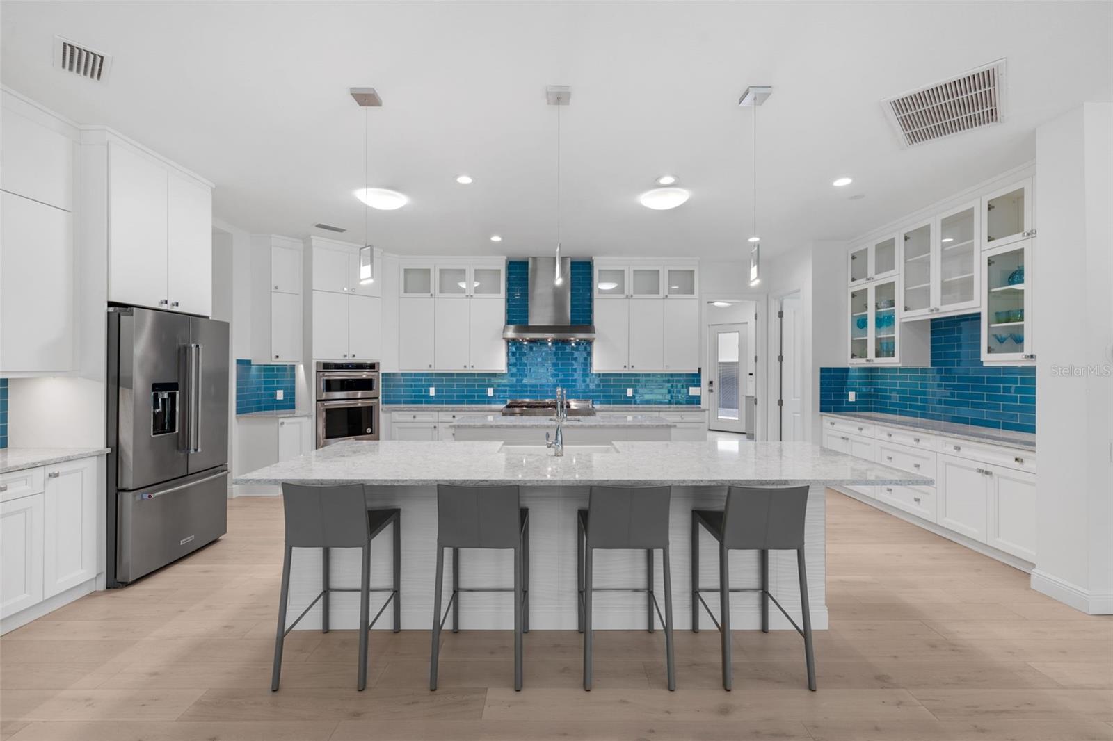 Completely reimagined from the studs up, this estate showcases uncompromising craftsmanship and thoughtful design. Every detail has been renewed, from the new roof and electrical systems to the plumbing, all bathrooms, opulent light fixtures, and a complete kitchen renovation, as well as White French oak floors and bespoke California Closets throughout the home. The list goes on, but you must see it in person to fully appreciate the fine details! The chef's kitchen is a showpiece, offering a gas cooktop, three ovens, three refrigerators, two dishwashers, a spacious walk-in butler's pantry, crystal and blue quartz countertops, and abundant custom storage- an entertainer's dream and a culinary haven alike. For ultimate peace of mind, the home is fortified with hurricane-impact windows and doors, and a built-in generator connected to a 500-gallon propane tank, ensuring comfort and security through any storm.