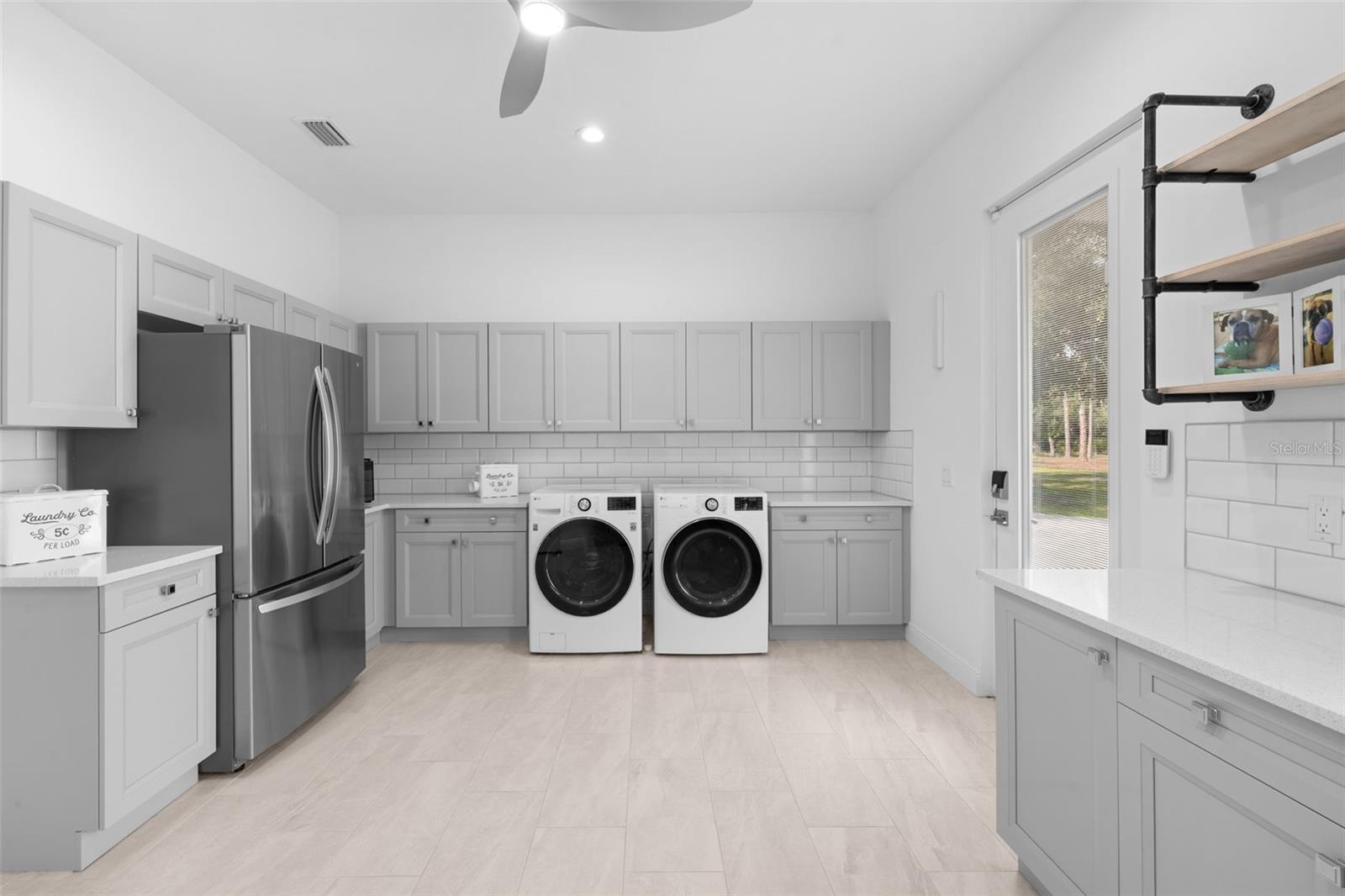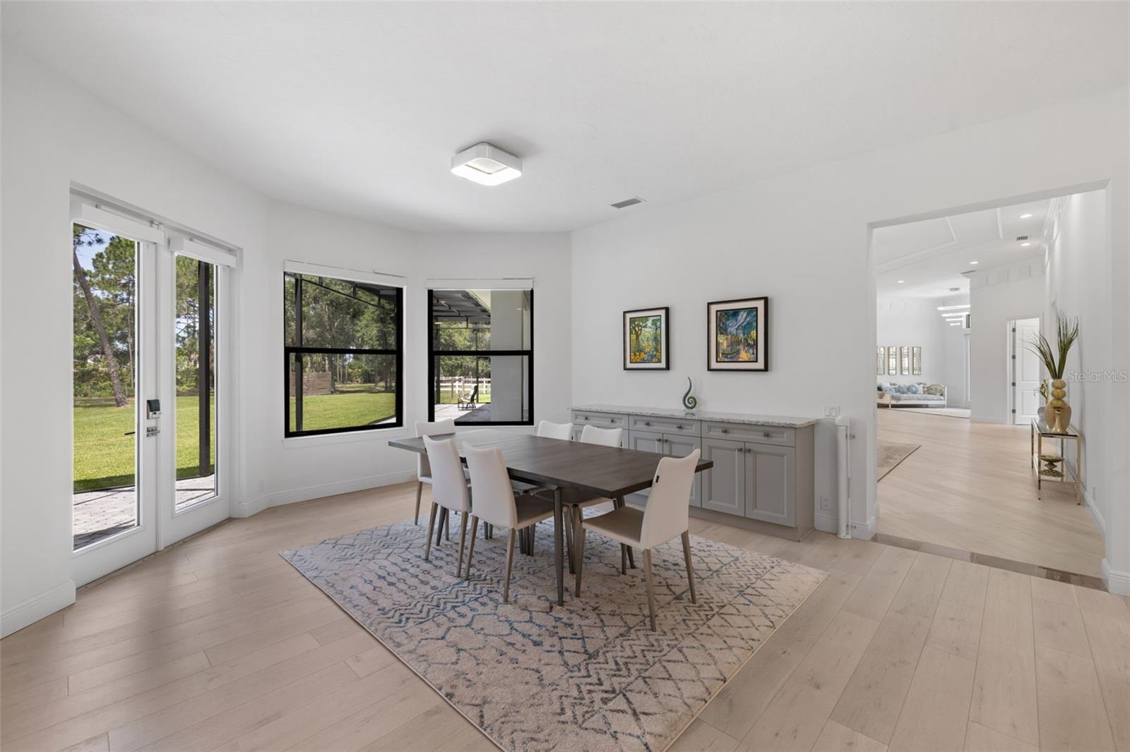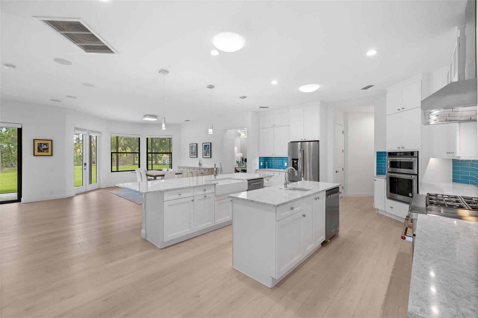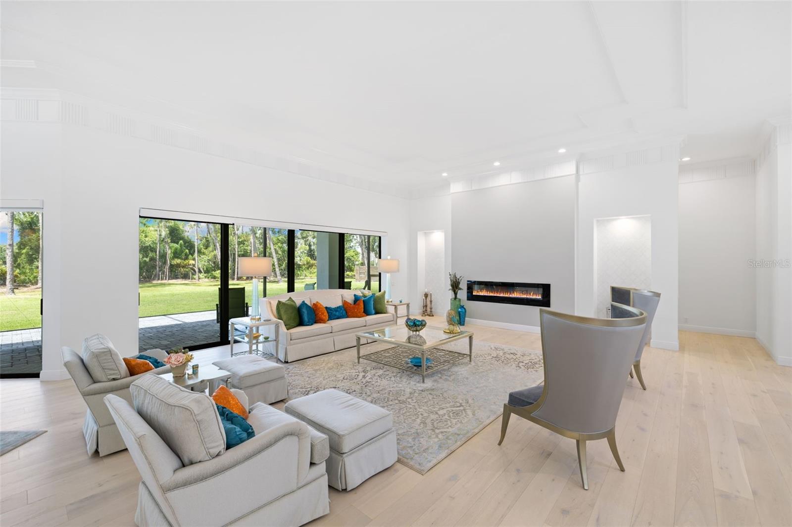 Completely reimagined from the studs up, this estate showcases uncompromising craftsmanship and thoughtful design. Every detail has been renewed, from the new roof and electrical systems to the plumbing, all bathrooms, opulent light fixtures, and a complete kitchen renovation, as well as White French oak floors and bespoke California Closets throughout the home. The list goes on, but you must see it in person to fully appreciate the fine details! The chef's kitchen is a showpiece, offering a gas cooktop, three ovens, three refrigerators, two dishwashers, a spacious walk-in butler's pantry, crystal and blue quartz countertops, and abundant custom storage- an entertainer's dream and a culinary haven alike. For ultimate peace of mind, the home is fortified with hurricane-impact windows and doors, and a built-in generator connected to a 500-gallon propane tank, ensuring comfort and security through any storm.