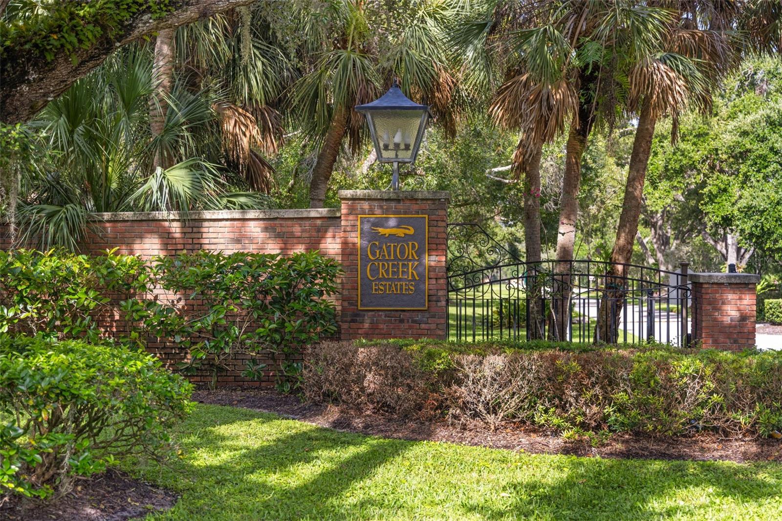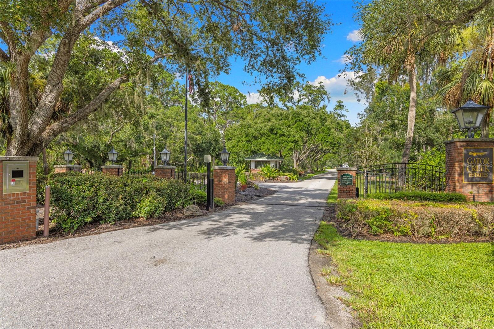 7051 Turtle Lane- a masterpiece of timeless luxury and privacy, nestled within the coveted gates of Sarasota's prestigious Gator Creek Estates. Beyond the community gates, a second private gated entrance welcomes you home, leading you down a winding drive framed by a tranquil pond and fountain, creating an unforgettable sense of arrival.